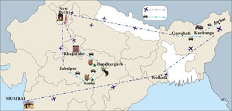 Places Covered: Mumbai - Jorhat – Kaziranga - Guwahati – Delhi – Jabalpur – Kanha – Bandhavgarh – Khajuraho - Delhi